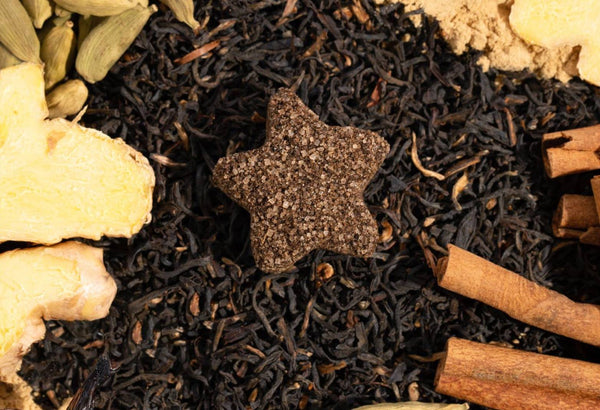Chai Spice Tea Drop Ingredients: *Organic Raw Cane Sugar, *Organic Assam Black Tea, Organic Vanilla Extract, *Organic Cardamom, *Organic Cinnamon, *Organic Ginger